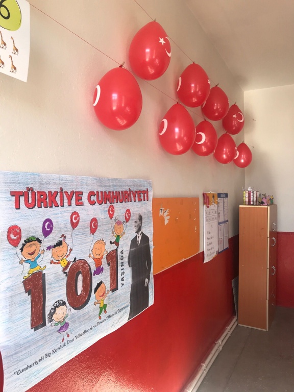 Türkiye Cumhuriyeti'nin kuruluşu, insanlık tarihine yön veren çok önemli olaylardan biridir. Okulumuzda 29 Ekim Cumhuriyet Bayramı, Mustafa Kemal Atatürk ve silah arkadaşlarının 101 yıl önce tohumlarını attığı Cumhuriyetimizin ilanı, öğretmen ve öğrencilerimizin hazırladığı çeşitli gösteri ve etkinliklerle büyük bir coşkuyla kutlandı. Cumhuriyetin temeline kanlarıyla harç taşıyan Aziz Şehitlerimizi ve Mustafa Kemal Atatürk'ü saygı ve rahmetle anıyoruz.